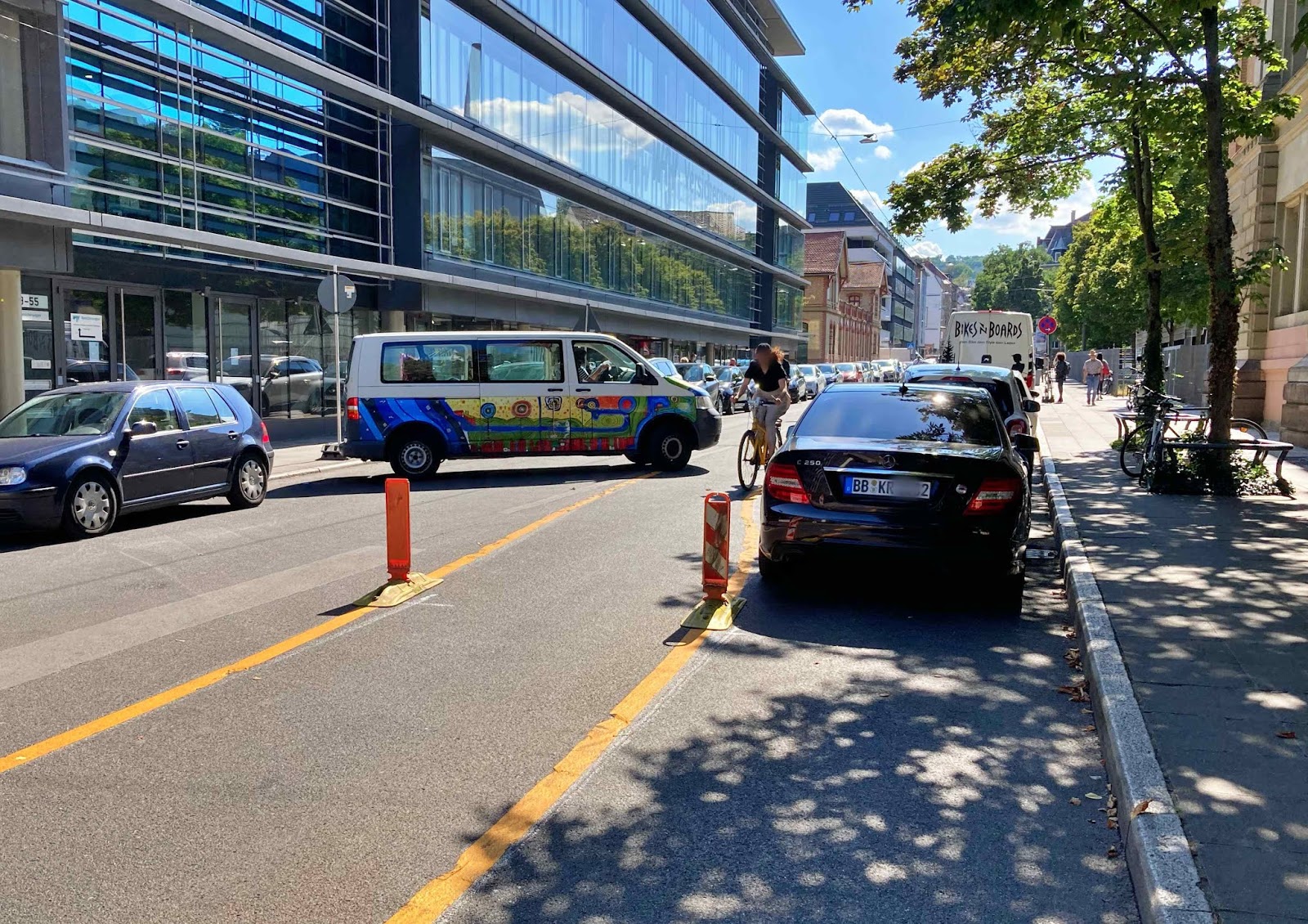 es ist schon lustig: da wird einem jahrzehntelang erzählt welche leuchturmfunktion gerade die tübingerstraße für die neue mobilität hat und dann wird in einem fort kleinmütig und ohne erkennbares konzept zum schaden der radfahrer herumgebastelt.